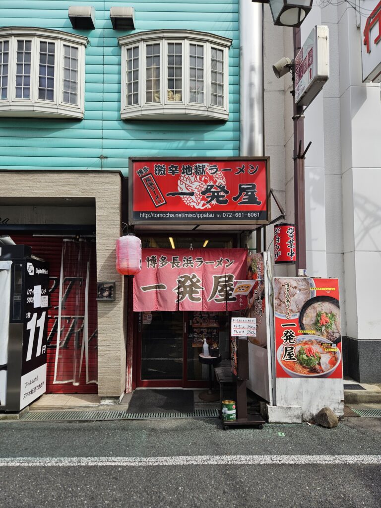 高槻駅近くの「博多長浜ラーメン 一発屋」は、豚骨スープの旨味と“激辛チャレンジ”で地元に根付く一杯の名店です。深夜まで開く日もあり、飲んだ後の〆にも頼れる存在です。